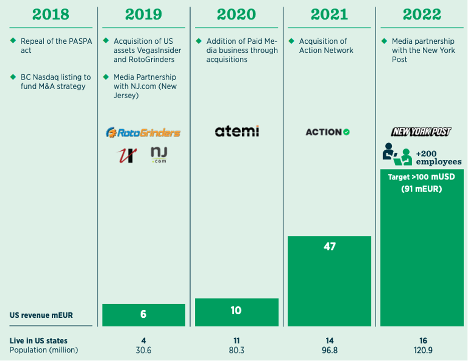 With 2000+ content sites and applications, Denmark-based Better Collective (BETCO:SS) is an industry-leading affiliate. Over the last 18 years, Better Collective has won over 250 operator clients (including bet365, FanDuel and Coral), which market their brands through Better Collective’s website portfolio, leveraging the company’s >65 million monthly visitors across all sites.