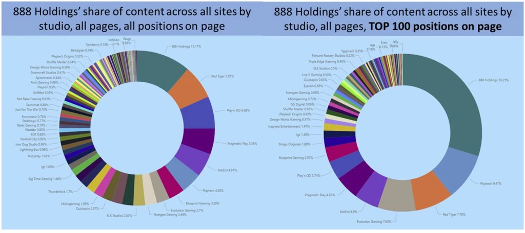 The diagram below paints a similar picture, but using one major operator group as an example. 888 Holdings dedicates 11% of all casino space to in-house game content, but 30% of prime real estate on site.