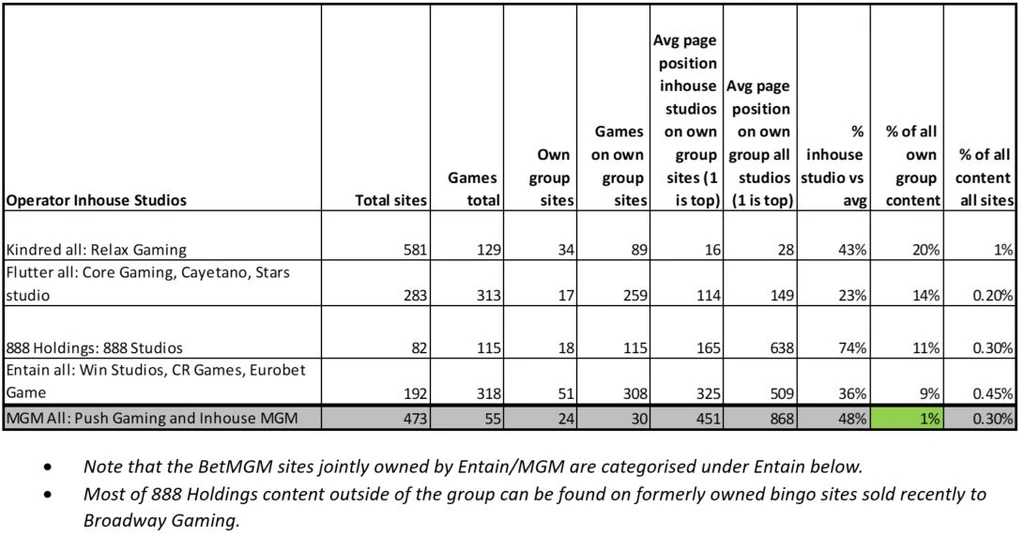 The table below contrasts MGM with four top operator groups that have either acquired or created studios in-house. Most acquiring operators continue to allow their in-house studios to service competing operators, though often ensuring that games debut exclusively for a period in-house.