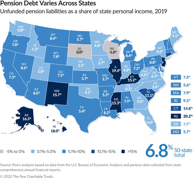Then there’s one of the most prominent and worrying concerns for state legislation, massive unfunded pension debts.
