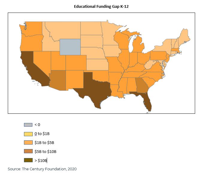 In terms of education spending gap Florida, Texas and California are most in need.