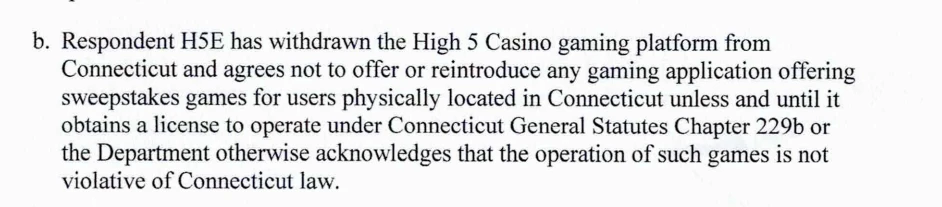 Nearly three months after a Connecticut agency issued a summary suspension against High 5 Games over allegations of rampant illegal gambling violations, the company has agreed to cease operation of its online casino in the Nutmeg State.