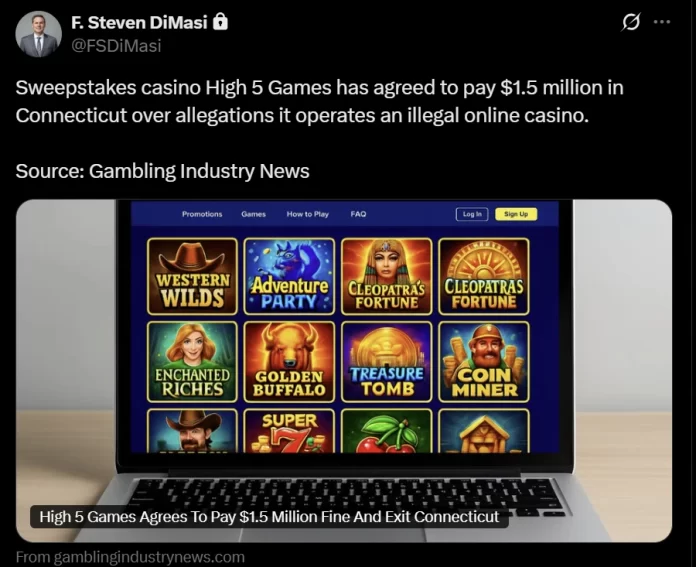 Under a comprehensive settlement with the state’s Department of Consumer Protection, High 5 Games agreed to pay a fine of nearly $1.5 million, the agency announced on Thursday. While High 5 Games discontinued operations of High 5 Casino across the state, the DCP reinstated High 5 Games’ online gaming service provider licence, effective 22 May.