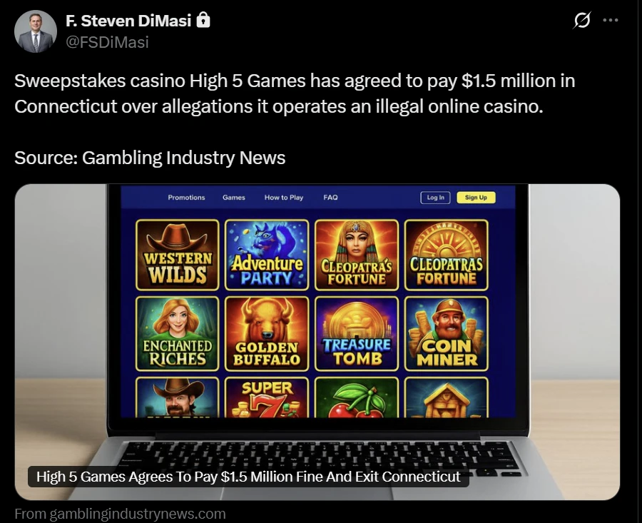 Although High 5 Games offers licensed gaming products throughout Connecticut, the state has not licensed High 5 Casino, an online platform. A licensed supplier in the state since 2021, High 5 Games provides licensed gaming content to both the FanDuel and DraftKings online casino sites. There is a vast disparity between High 5 Games, a licensed supplier in Connecticut, and High 5 Casino, an unlicensed sweepstakes operator. When the DCP issued charges against High 5 Games in March, it apparently marked the first time a state brought criminal charges versus a US sweepstakes casino.