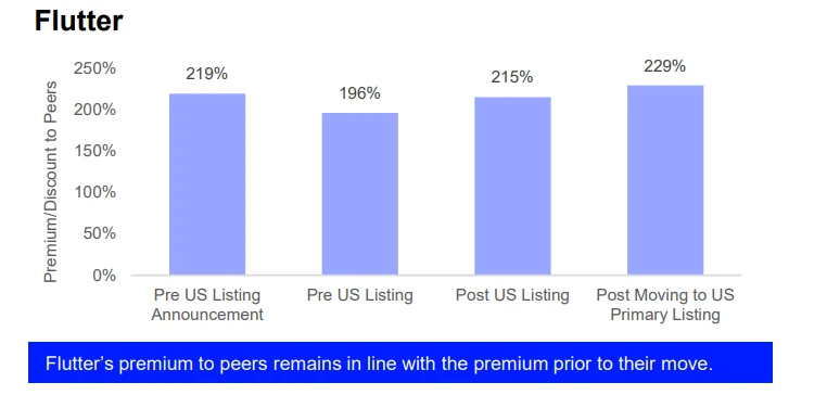 “Movements seen in discounts or premiums to peers have largely been moderate, suggesting any changes in valuation are due to industry trends rather than the change in listing.”