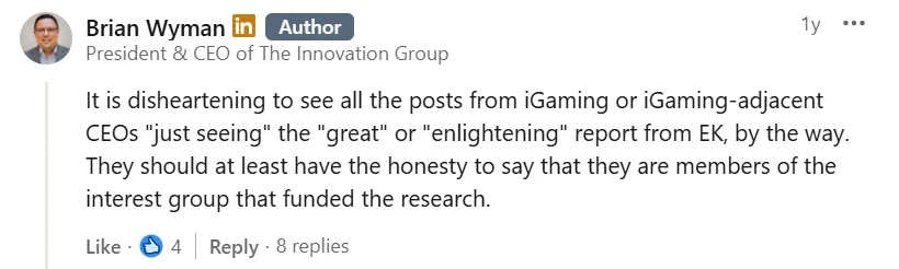 His assessment mirrored findings from an Innovation Group study commissioned by the state of Maryland as it was considering iGaming last year, when no bill was passed. Other studies from about the same time, however, have reached different conclusions. Among them were research from Analysis Group and Eilers & Krejcik Gaming, and the EKG study even directly criticised the IG study as “flawed”. NCLGS founder and former Florida senator Steve Geller lamented last week that such conflicts give the impression of research that is bought by competing interests.