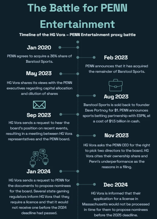 The nasty proxy battle may serve as an example for major sportsbook operators on how to handle disputes from activist investors. In a memo issued by Penn Entertainment last month, the company claimed that HG Vora violated several institutional investor waivers in which they agreed to remain passive in their activities. Furthermore, Penn asserted that the fund pushed for governance changes despite express prohibitions on doing so by state gaming regulators.