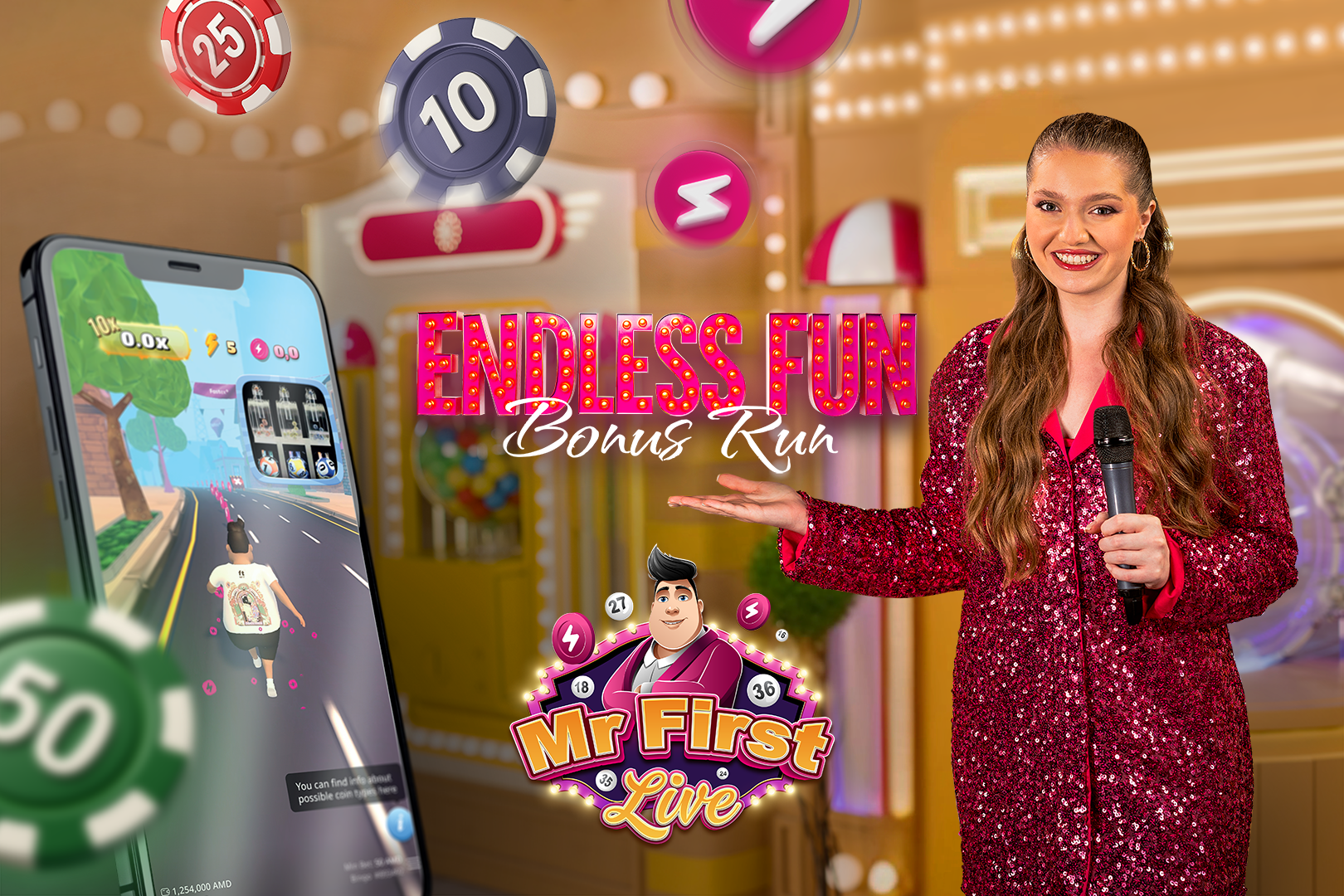 The “hybrid concept” that underpins the ‘Mr. First Live’ game show is another prime example of giving players the autonomy to shape their own gaming experiences. When players qualify for a brand-new bonus round, the game’s fast-paced bouncing ball-inspired format transforms into a sprint race to collect rewards and multipliers.