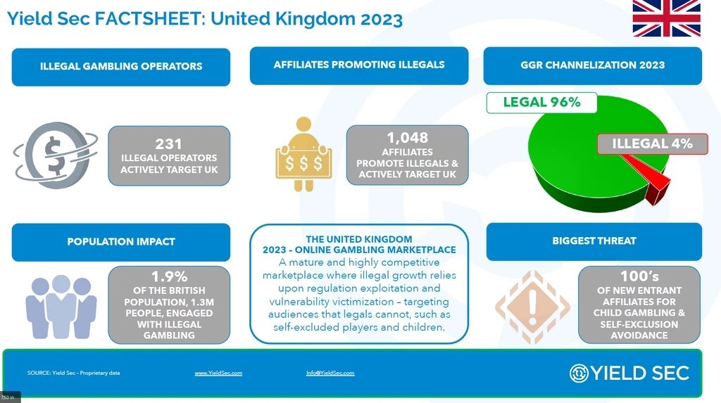According to Yield Sec, this means that illegal gambling now makes up 4% of the UK’s online gambling market share and gross gaming revenue (GGR).