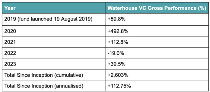 In 2023, Waterhouse VC generated a strong return of +39.5%, strongly outperforming the S&P500 (+24.8%) and the ASX200 (+7.8%).