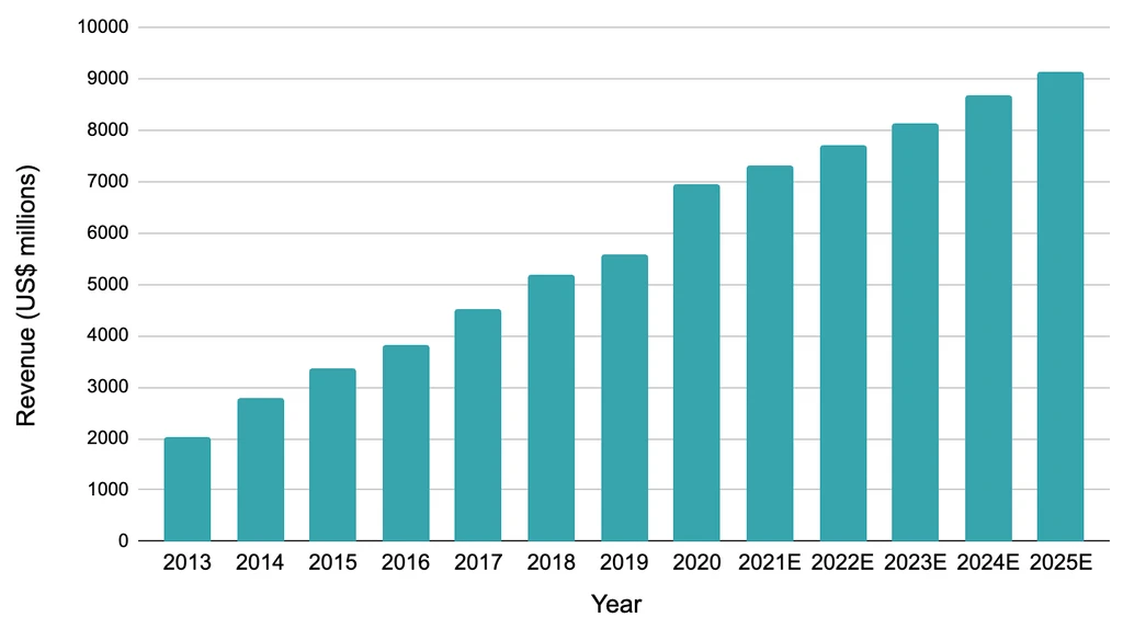 Globally, players spend around $1bn on in-game currency across Aristocrat’s collection of social casino games. In 2020, social casinos generated close to US$7bn of revenue globally (Australian Communications and Media Authority).