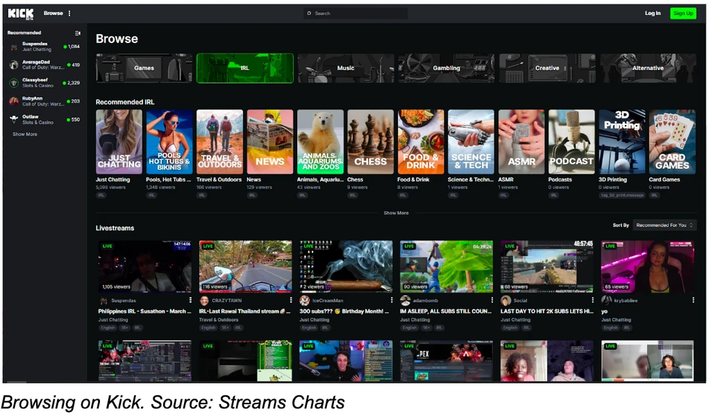 In contrast, Kick’s gambling content is among the most popular content on the platform. This has successfully attracted some of the most popular streamers away from Twitch.