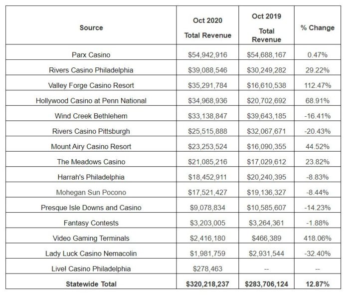 Original article: https://www.yogonet.com/international//noticias/2020/11/19/55504-pennsylvania-gaming-revenue-up-13-percent-in-october