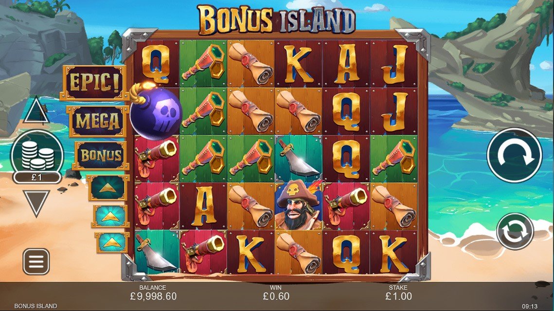 ith an enhanced portrait-play version, Bonus Island is a cascading video slot with six reels, five rows, and 15,625 ways to win. Bonus Island incorporates the latest in graphic design and back-end game development to deliver an adventure-filled exploration of riches and treasures through mega bonuses and up to 15,625 ways to plunder big cash prizes, all set to a swashbuckling soundtrack.