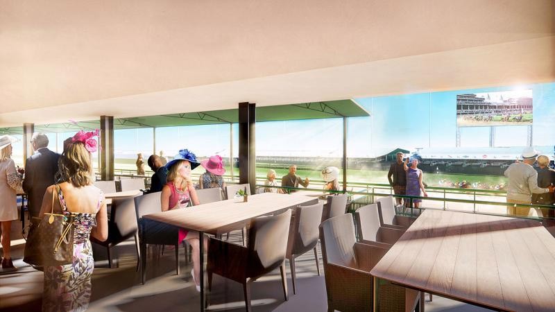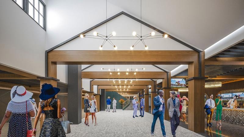 Ticketed guests in the Homestretch Club will have access to 18,600 square feet of the new premium hospitality space in the first-floor concourse area that will be transformed into a high-end air-conditioned club atmosphere to place bets, with food and beverage offerings as well as other amenities. The hospitality space will feature a grand staircase and a 100 ft. feature bar.