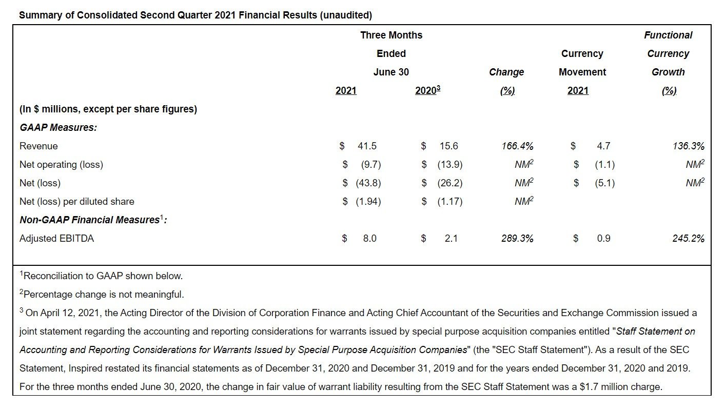 nspired Entertainment, Inc reported Thursday the financial results for the three-month period ended June 30, 2021.