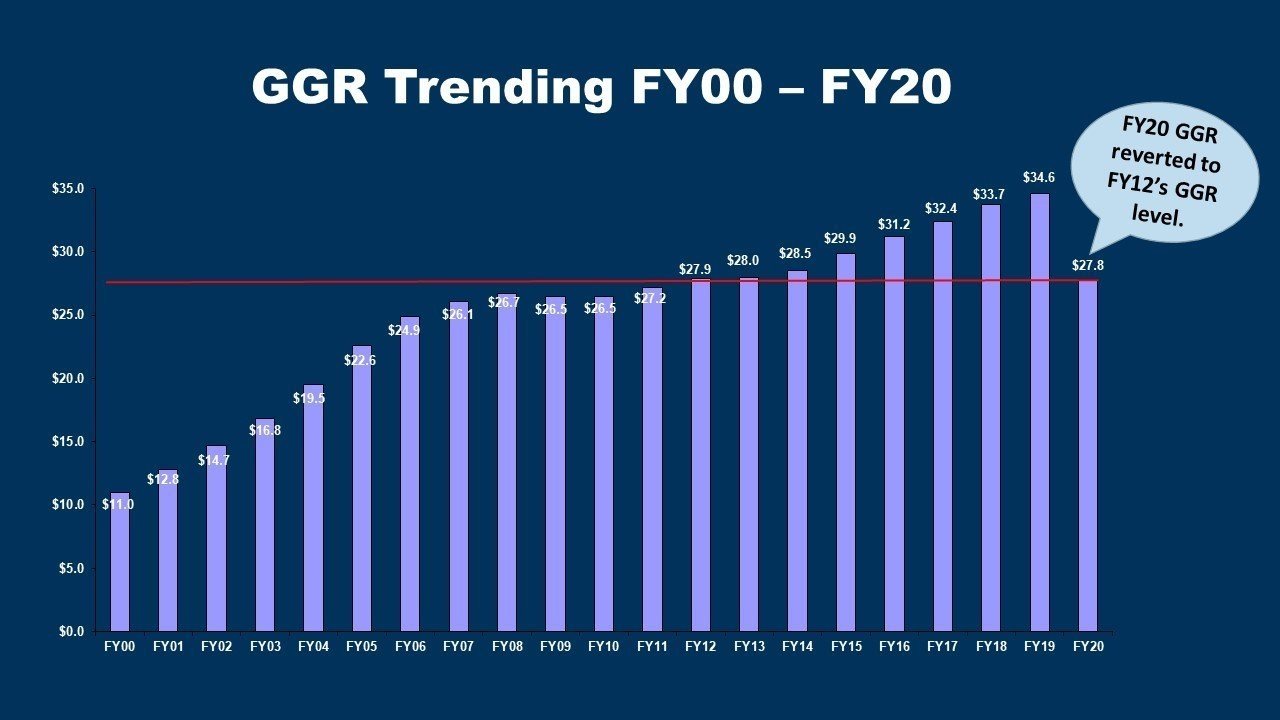The GGR figure is an aggregate of revenue from 524 independently audited financial statements of 248 federally recognized Tribes across 19 states, and the GGR for an operation is based on the amount wagered minus winnings returned to players.