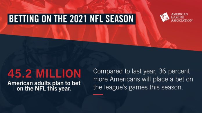 he American Gaming Association has shared results of its annual national survey of Americans’ NFL betting plans, showing a record 45.2 million Americans (18%) plan to wager on the 2021 NFL Season, set to start September 9.