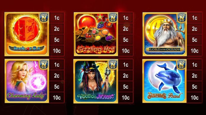 “Book of Ra” and “Sizzling Hot” share the red sun disk symbol as the main asset for this feature. For the “Charming Lady”, it is a pink sphere, and for “Dolphin’s Pearl”, a pearl in a “bubbly” animation. “Lord of the Ocean” and “Voodoo Magic” coins trigger the re-spin feature for the Progressive prizes.