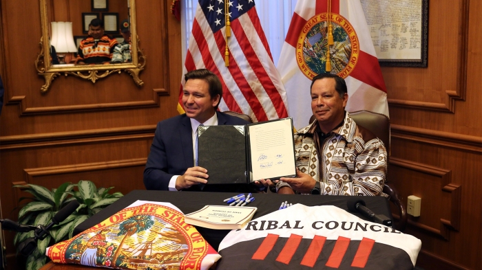 A second argument raised by the suit is that Gov. Ron DeSantis and the Florida Legislature violated federal Indian gaming law and the federal Wire Act by authorizing gambling outside of Indian lands and by “allowing the use of the Internet or interstate payment transmissions where sports betting is illegal.”