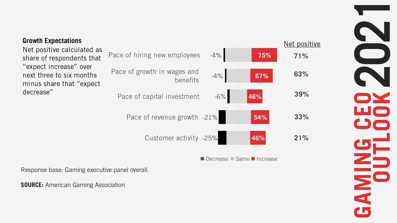 “AGA’s inaugural Gaming CEO Outlook reflects the strength of our recovery and consumer demand for our world-class entertainment offerings,” said Bill Miller, AGA president and CEO.
