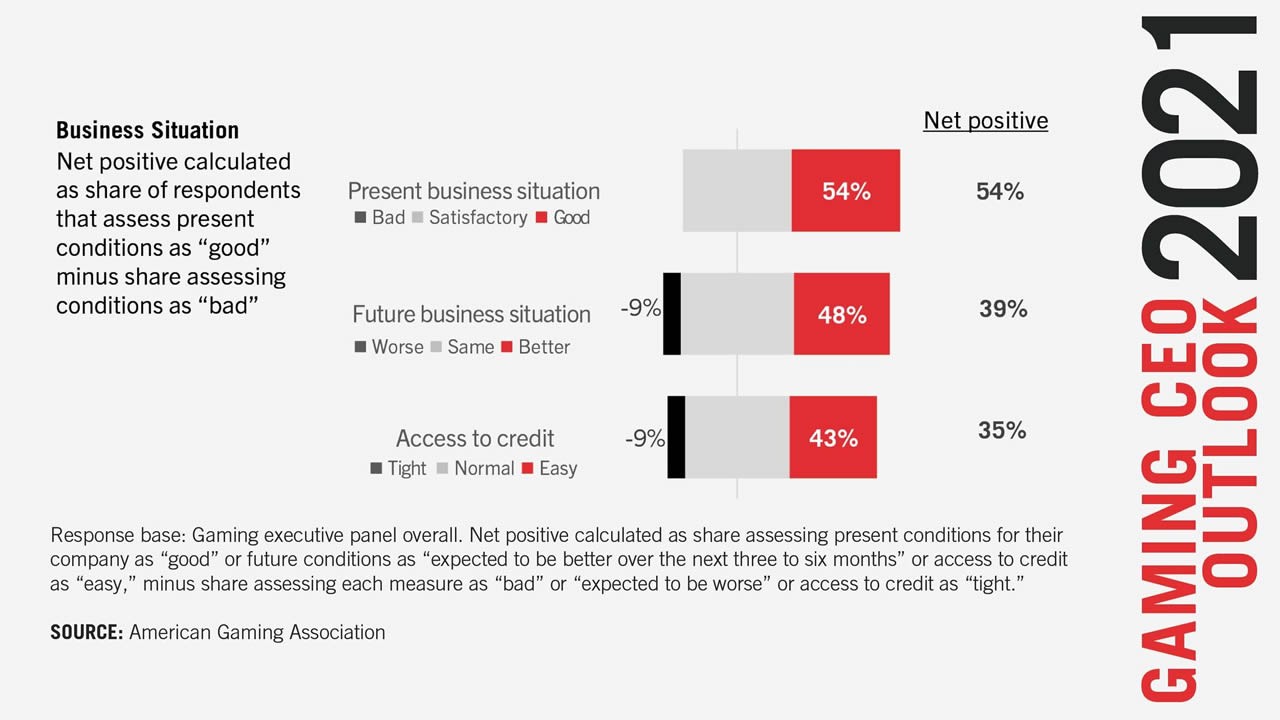 aming CEOs are confident in the future of the industry, expecting positive conditions to continue to improve in 2022, according to the American Gaming Association (AGA).
