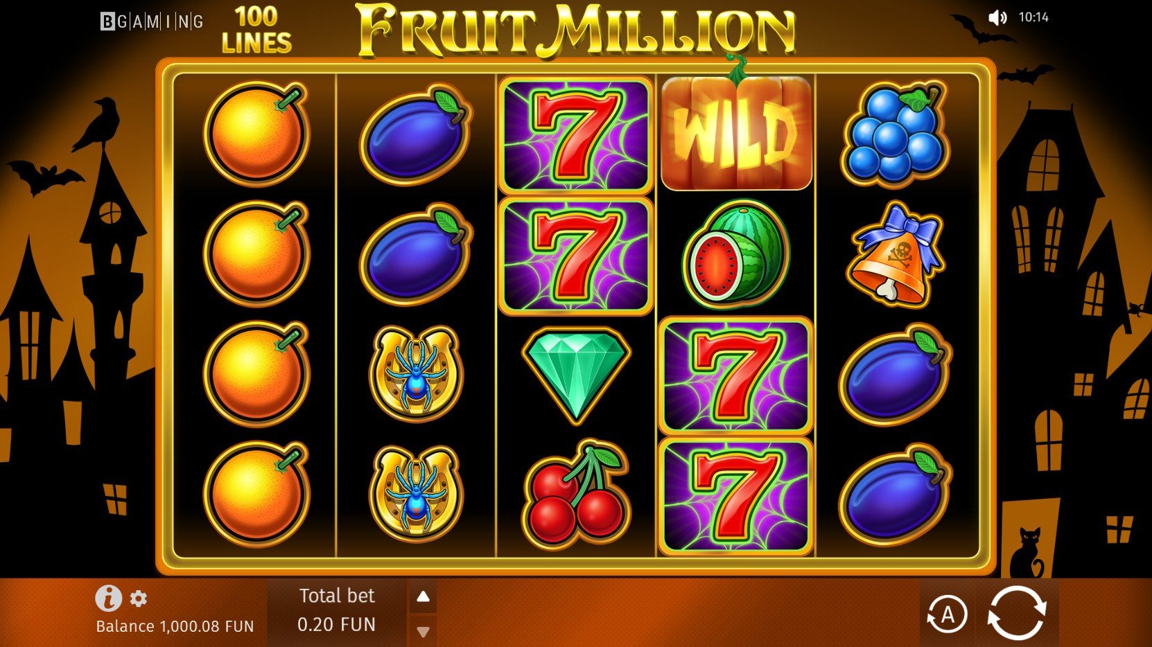 he Fruit Million slot by BGaming changes its skin again. The classic-style slot transforms into a Halloween game to celebrate All Saints’ Eve. The company offers players a new kind of trick-or-treating game, with a hundred winning combinations and Wild symbols that expand on the whole reel.