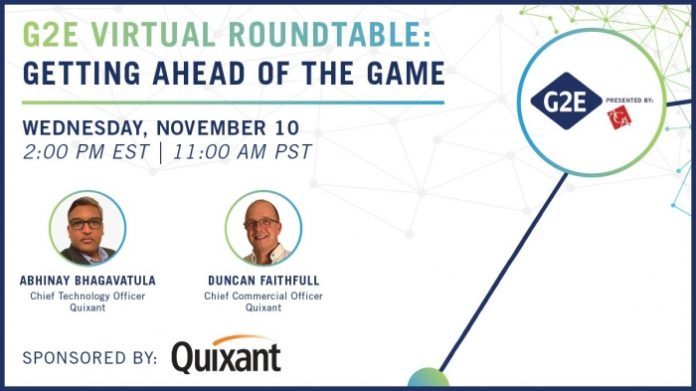 ‘G2E Virtual Roundtable: Getting Ahead of the Game’ will be presented by Quixant on Wednesday, November 10 at 2:00 PM EST, moderated by Quixant’s Abhinay Bhagavatula, Chief Technology Officer; and Duncan Faithfull, Chief Commercial Officer.