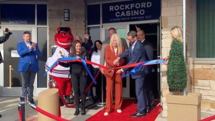 ard Rock announced on Wednesday the opening of its temporary Rockford casino. Located at 610 N Bell School Rd, the property opened at 11 a.m. to the public after a ribbon-cutting ceremony where Mayor Tom McNamara did the honors.