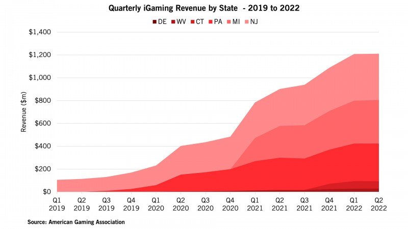 Meanwhile, the six operational US iGaming markets –Connecticut, Delaware, Michigan, New Jersey, Pennsylvania and West Virginia– generated $1.21 billion in Q2 2022, narrowly beating the vertical’s previous record, which was set in Q1 this year.