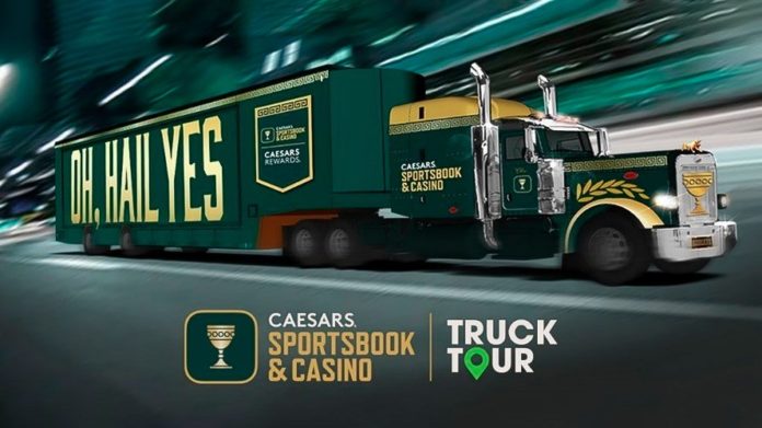 Gaming giant Caesars Entertainment announced Wednesday the launch of the Caesars Sportsbook & Casino Truck, hitting the road “on a nationwide tour to reach sports fans.” The truck tour is described as “an expansive fan engagement campaign” featuring a fully branded 18-wheeler traveling across the US. It will be making its debut on September 19 in Orchard Park, New York, for the Monday Night Football home opener of Buffalo against Tennessee.