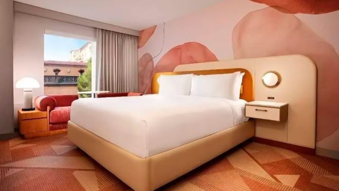 MGM Resorts Design Group partnered with Los Angeles-based Avenue Interior Design for the remodeling. The company said they “drew inspiration from the mid-century design style of Palm Springs, incorporating a desert palette of fresh pinks and chartreuse greens with clean lines and soft shapes.”