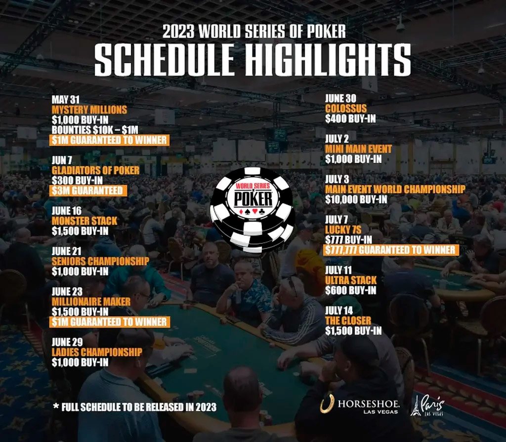 The 2023 WSOP schedule will feature the $10,000 No-Limit Hold’em World Championship, best known as “The Main Event”, along with new events and the return of timeless classics.
