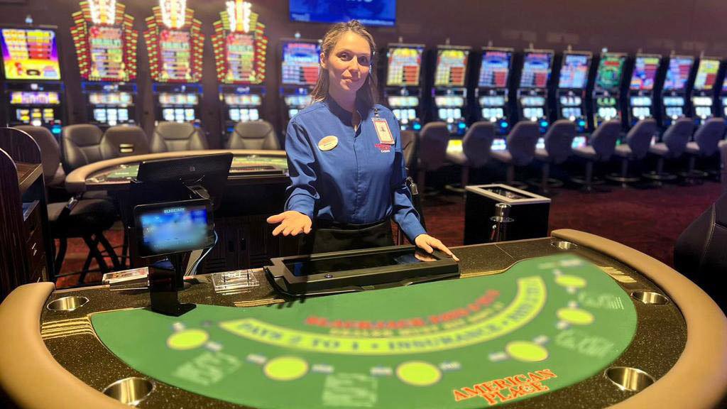 Located approximately 30 minutes north of O’Hare International Airport, The Temporary by American Place is the only casino in Lake County, Illinois. Its interior design draws inspiration from “a day at the lake,” with greenery and boat paddles above the 1,000 slot machines and 50 table games on the property.