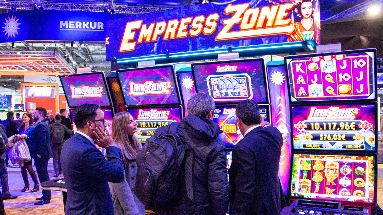 Merkur’s ICE headline display covered both the International and German domestic markets by featuring the latest Linked Progressive Jackpot attractions Link Zone 2, now with enhanced software and a brand new range of four game titles, The Legend of FuLu Chen, China Charms, Solar Link and the all new Five.