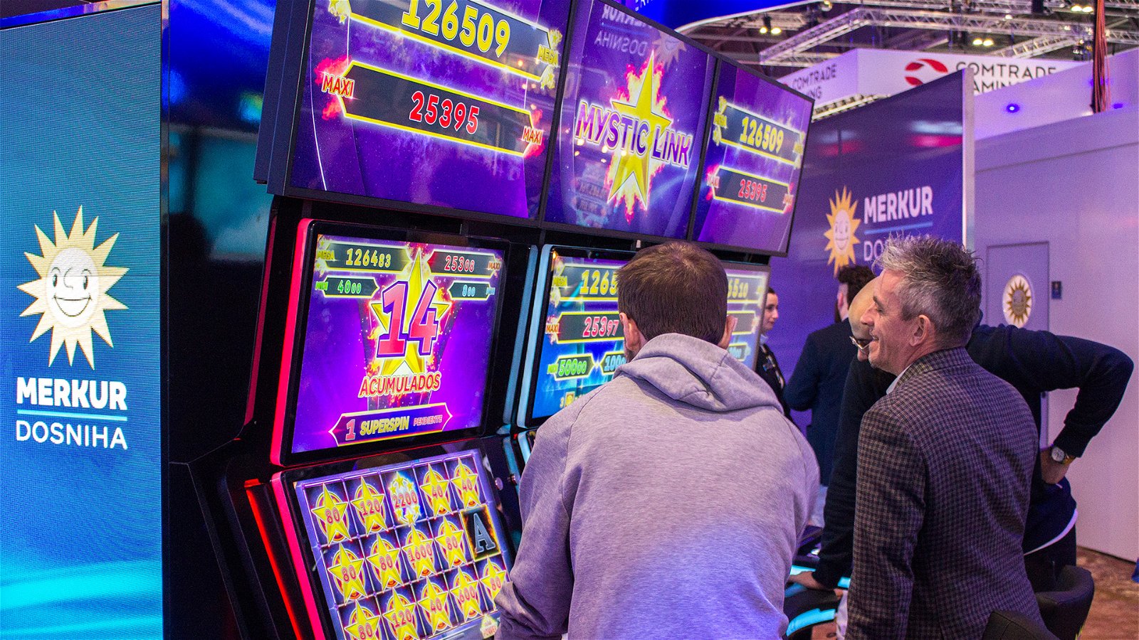 On what was the largest exhibitor booth in London ExCel’s north halls, the Merkur Sun “shone proudly” on top of a huge display that had been redesigned in order to give improved access to visitors while also presenting the many subsidiary teams and the range of gaming omni-solutions that they represented.