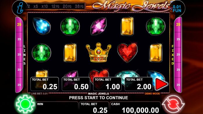 When the win from the current game is paid, all the symbols featured in the winning combination disappear, and the symbols above them cascade down in their places as in a mini-free game. The multiplier enhances the thrill. With every next cascade win, the player gets a win multiplier of x2, x5, and x10, respectively, and with every next cascade win afterward, he gets 12, 20, and 38 free games, respectively. All the winnings in the free games are multiplied by 2. Magic Jewels offer a plunge into the world of luxury and wealth with big diamonds and opportunities.