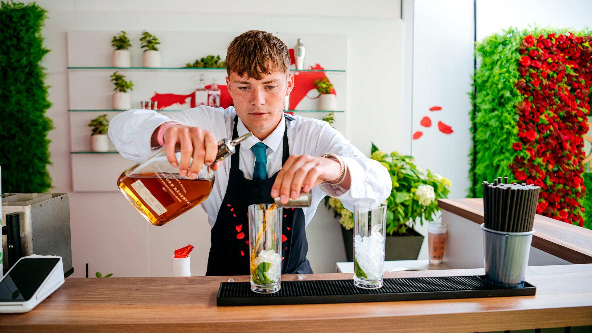 For the first time at Ascot Racecourse, racing enthusiasts have been able to experience the traditions of the Kentucky Derby through an experiential activation in the Queen Anne Enclosure. Guests were able to enjoy signature Mint Juleps, witness the Kentucky Derby trophy on display, and photograph themselves among a rose-filled backdrop.