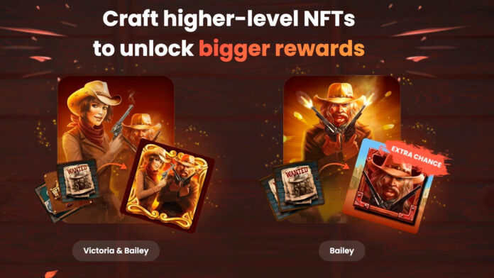 Players pick up NFTs during the gameplay, collect them in albums, and craft higher-level NFTs to receive various benefits, up to a share of the Holders Treasury — a percentage of all bets placed on Victoria Wild West paid monthly.
