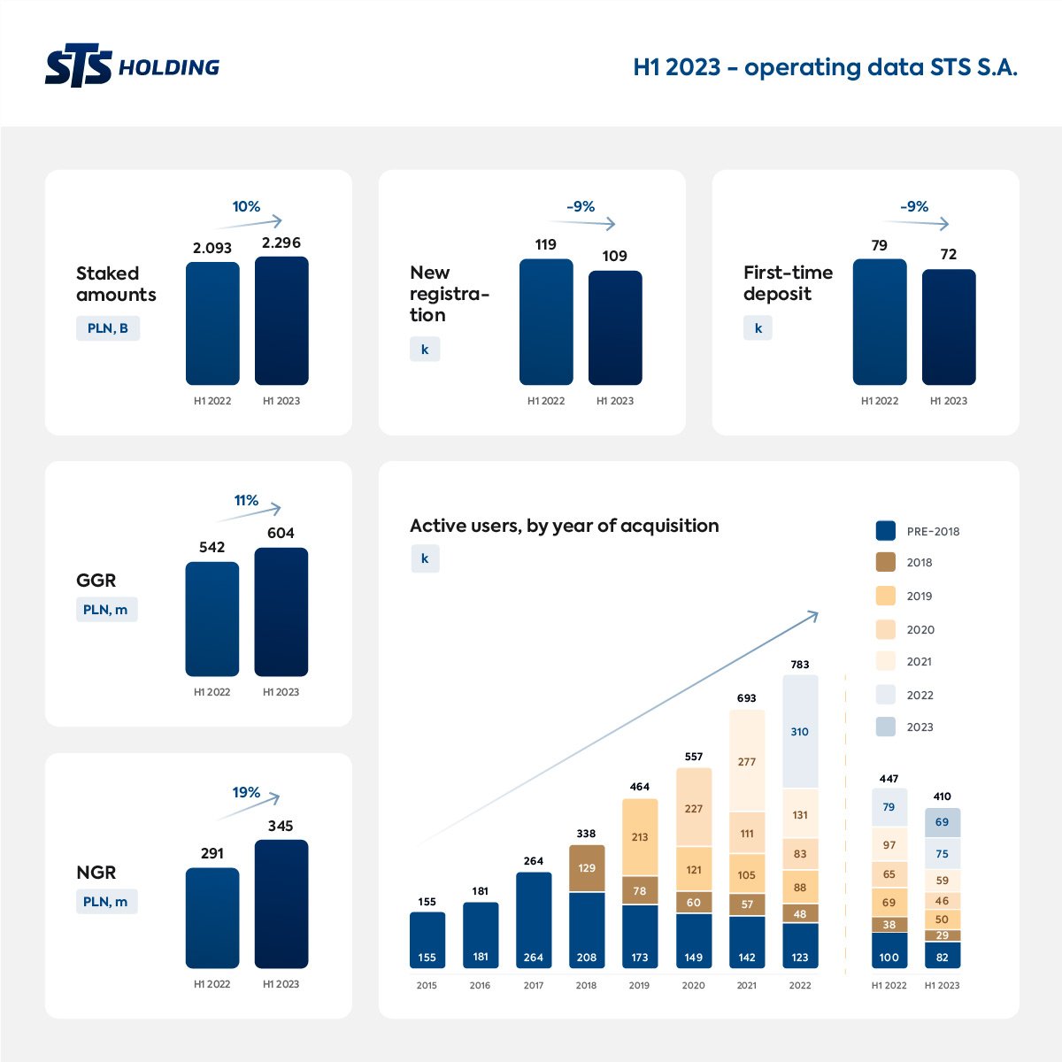 The operating results for Q2 2023 confirm that STS is performing well in the Polish market. The potential of the domestic iGaming industry is high and STS is able to effectively exploit its market position. We hope to record the highest player activity in the last quarter of this year,” said Mateusz Juroszek, CEO of STS Holding