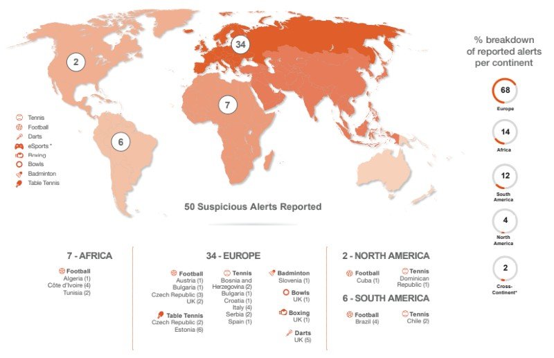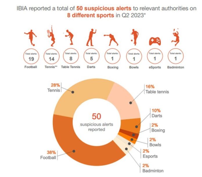 Further highlights of the report show that, of the 50 suspicious alerts in Q2 2023, 47 were related to men’s events, two to women’s events, and one to a mixed-gender event.