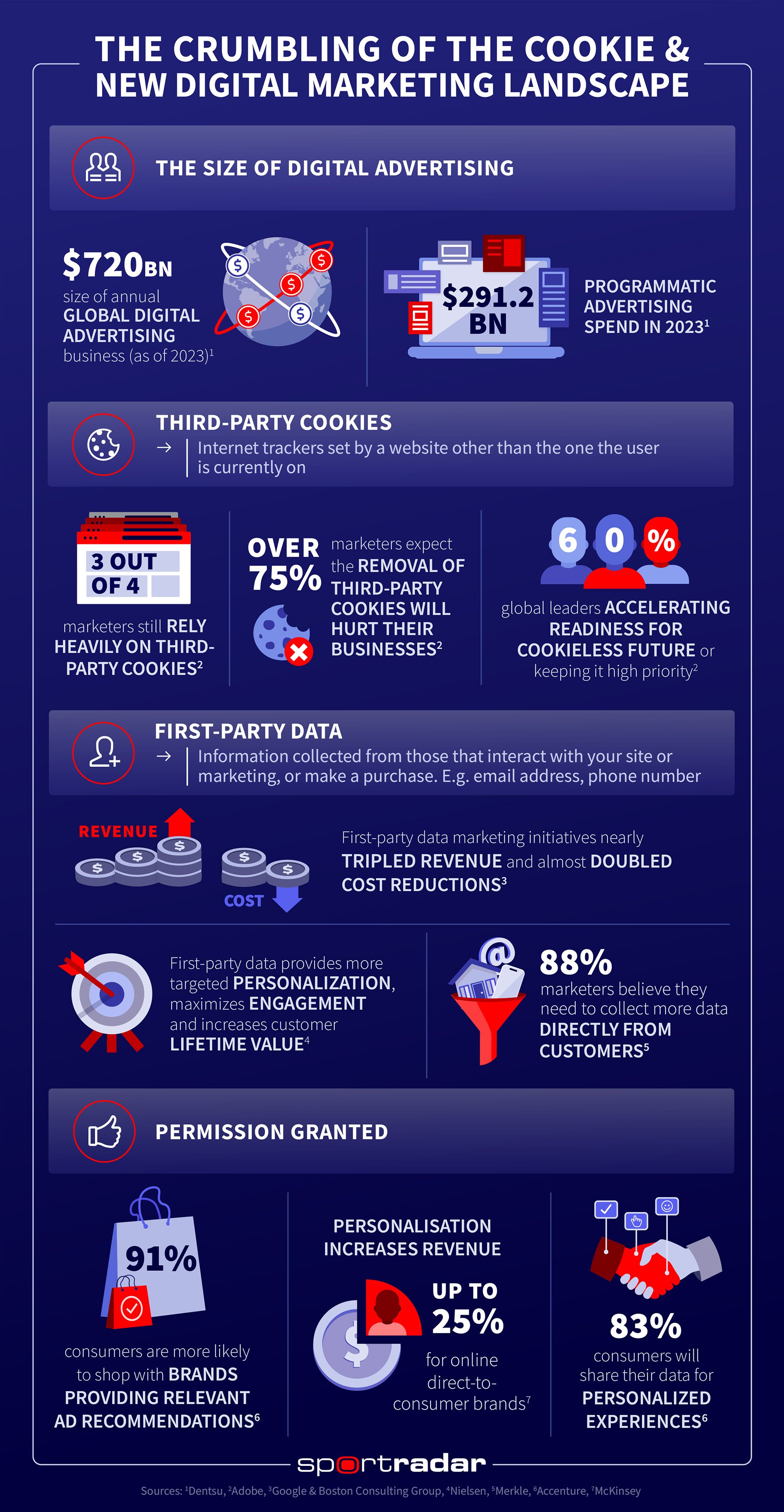 “The crumbling of the third-party cookie represents a significant opportunity for rightsholders and brands to gain a greater understanding of fans, while also enabling more efficient and seamless delivery of digital advertising content,” Rainer Geier, EVP, Fan Engagement at Sportradar, said.