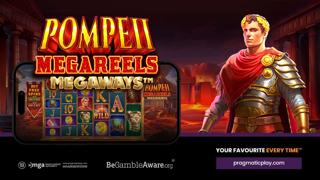 iGaming content supplier Pragmatic Play has launched its newest adventure slot Pompeii Megareels Megaways. Set against the backdrop of Mount Vesuvius, the game boasts six ever-changing reels, offering 117,649 ways to win. Drawing inspiration from ancient Rome, the game features emperor figures, armored warriors, chariots and other iconic symbols.