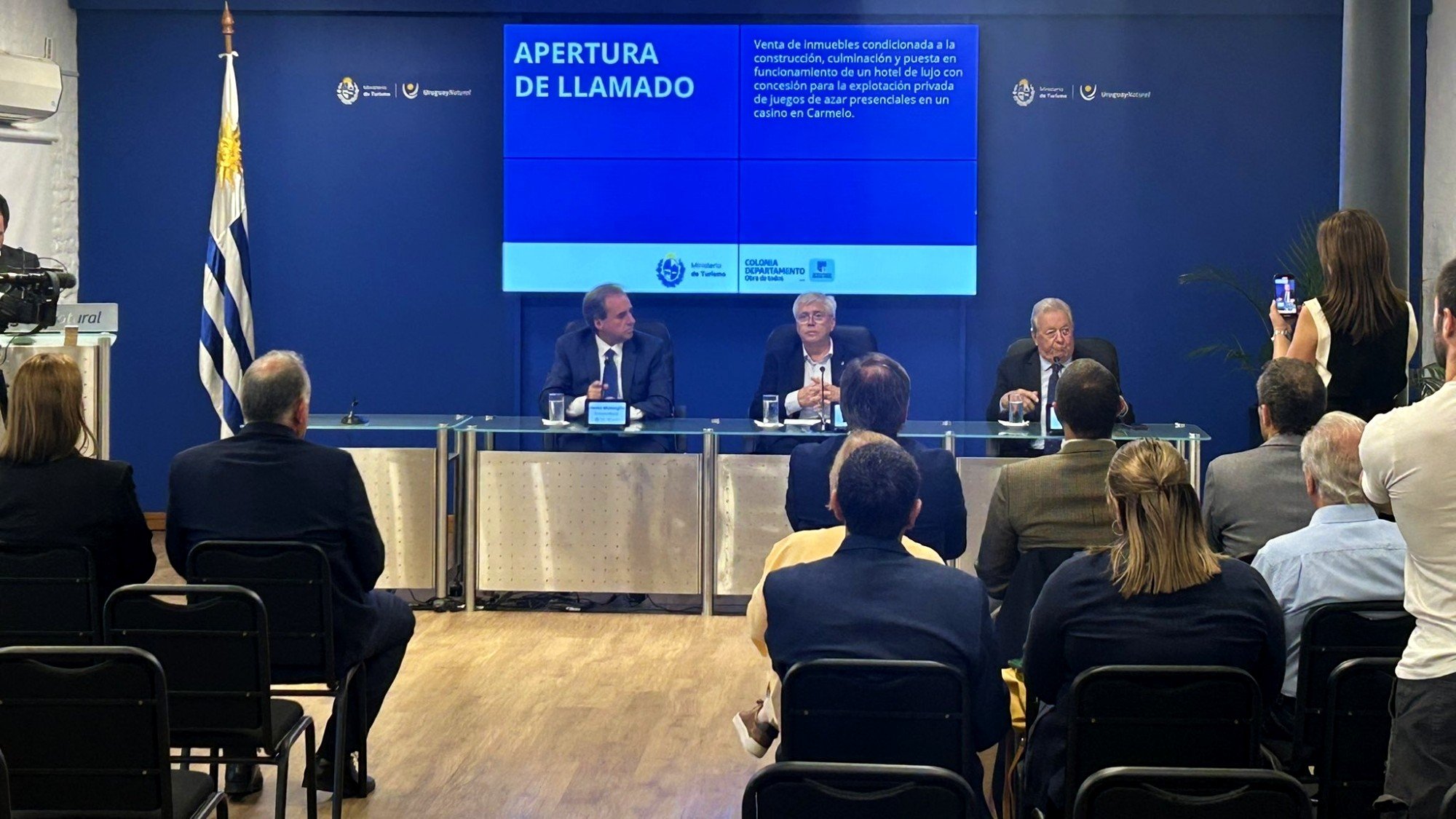 Presentación del llamado para la venta de dos inmuebles condicionada a la construcción y puesta en funcionamiento de un hotel de lujo con concesión de Casino en Carmelo. Participa el Min @Tabareviera junto al Subscrio @MonzeglioRemo los Dir @CurbeloDr @roquebaudean pic.twitter.com/KIFEB9Pbh4