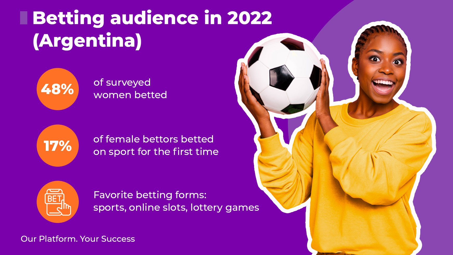 Same GEO, in Argentina, 48% of surveyed women were found to have engaged in betting activities during the year 2022. The predominant forms of participation encompassed sports betting, lottery games, and online slots, with land-based slot gaming excluded from consideration. This reflects a growing interest among women in iGaming.