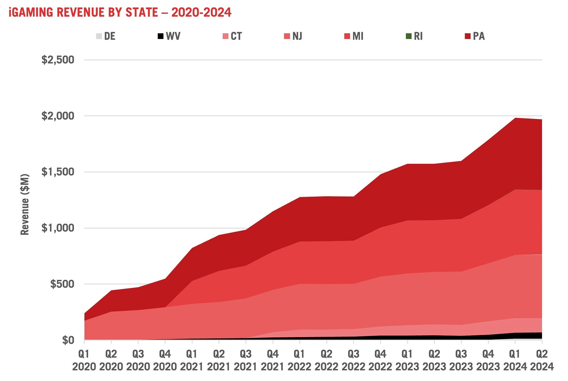 Year-to-date through June, national iGaming revenue stands at $3.95 billion, a 25.6% increase over the same period last year.
