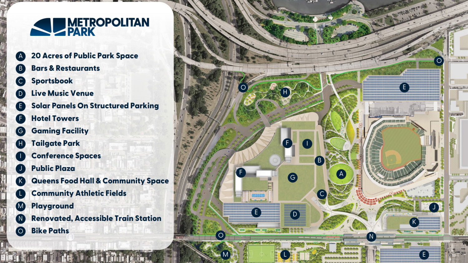 NY Mets owner Steve Cohen has unveiled detailed new renderings of his proposed Metropolitan Park complex near Queens’ Citi Field, featuring a Hard Rock-run casino. If approved, the project would house the aforementioned casino along with parks, restaurants, and shopping areas.
