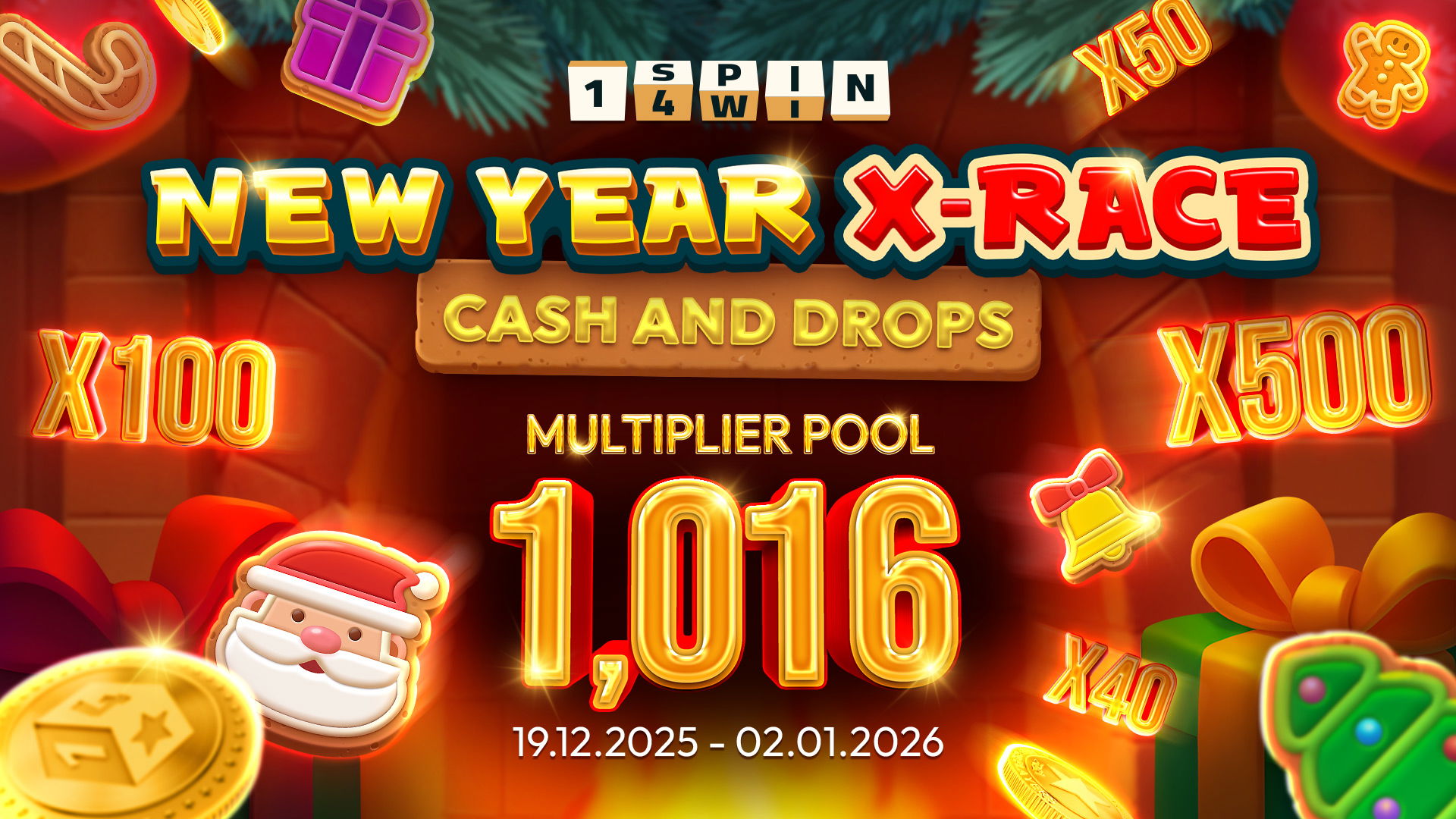 1spin4win is launching its “New Year X-Race” promotion from December 19, 2025, to January 2, 2026, offering 1,016 random multipliers, with the top multiplier reaching x500.
