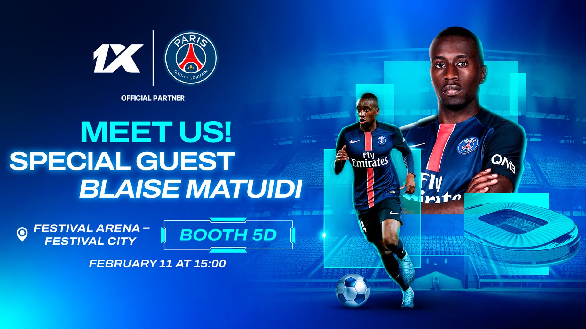At the conference, 1xAffiliates will be present with a booth. At the Festival Arena, visitors can enjoy meetups, networking, and offers. Additionally, on February 11 at 3:00 PM, special guest Blaise Matuidi, a Paris Saint-Germain legend and World Cup-winning French footballer, will appear at the booth.