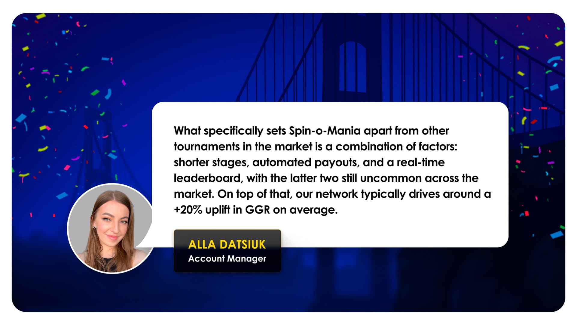 Now, we’ve taken everything we learned and launched Spin Express. Gamzix’s Head of Account Management, Aleksandra Kozymir, and Account Manager, Alla Datsiuk, explain how our new annual tournament is designed to be smoother to run, sharper in pacing, and more rewarding over the long term.